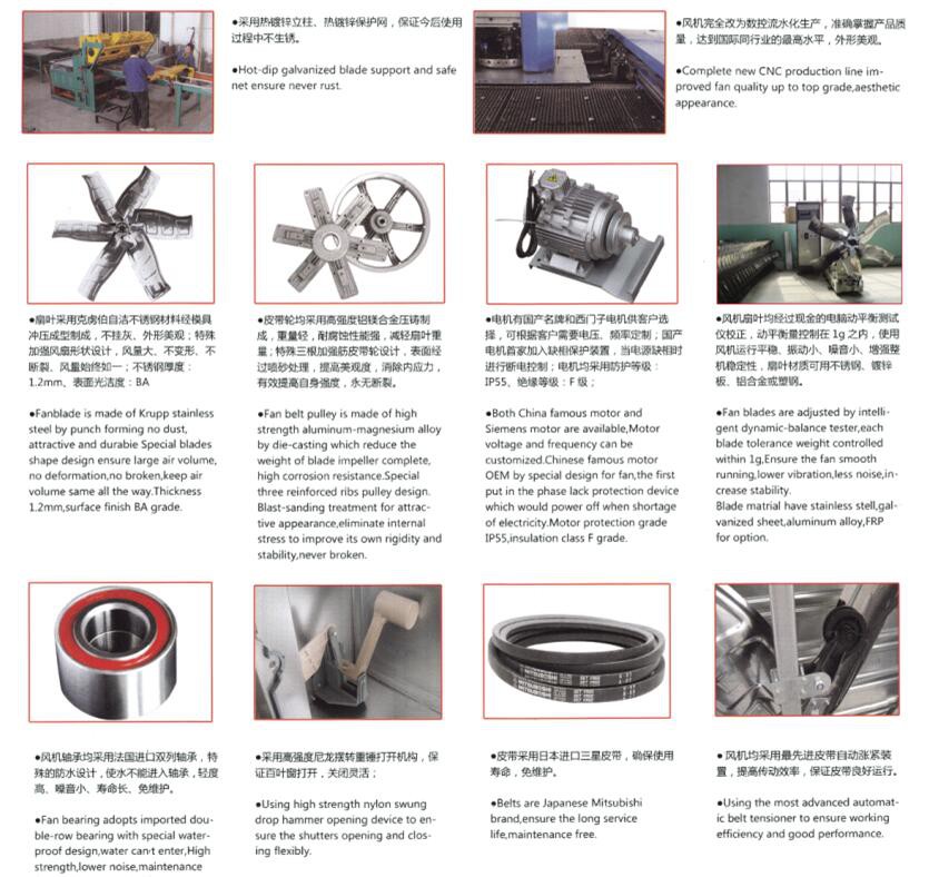 ◆百叶窗; 高强度热镀锌板,采用独特的百叶自动打开装置(重锤);保证百叶完全打开和关闭,任何情况下保持90°打开,使百叶达到不阻风、防风、防雨、防尘。